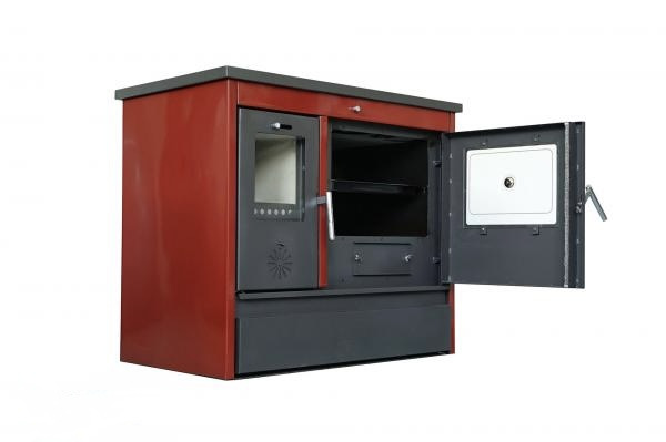 Sporák na tuhé palivo Gama smalt 11 kW – levý, červený | EcoKamna.cz